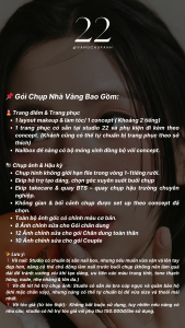 - Gói chụp áp dụng cho 1 người / 1 layout makeup / 1 trang phục.
